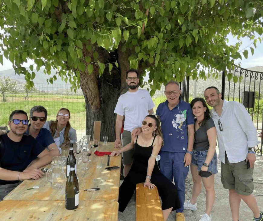Il mio core memory con Luigi è nel giugno del 2021. Avevo organizzato un piccolo gruppo di amici abruzzesi/romani/lucani per scoprire l’Abruzzo durante i mitici Europei. Non tutti addentro al vino, ma tutti curiosi. La prima tappa è stata il Tirino in canoa, dai nostri amici de Il Bosso, dove trovi l’acqua limpida che ti toglie dalla testa il superfluo, la seconda da Giulia e Luigi. Ci avevano detto: “Passate. Luigi forse sarà via… forse vi saluta. Passate”. Sorriso. È rimasto ore. Ad un certo punto mi ha fissata, con quella luce ironica che riconosco nei miei conterranei, e mi ha chiesto la cosa più abruzzese del mondo: «A chi so’ figli questi qua?». E poi: «Ma questi me la sanno girare ‘na sigaretta, se glie lo dico?». Certo che sì, Luigi.